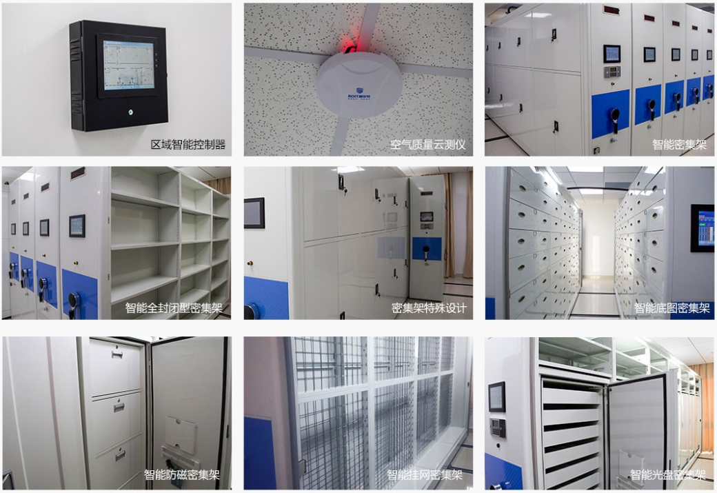 檔案館采用檔案庫房一體化解決方案,有效整合檔案存放環(huán)境智能管理、檔案存儲設(shè)備智能管理與實體檔案管理幾大系統(tǒng)。庫房實行分散控制、集中管理,智能調(diào)控庫房環(huán)境、自動調(diào)節(jié)庫房溫濕度、空氣質(zhì)量,確保檔案存放環(huán)境的安全;從電子檔案到實體檔案的一體化管理,借助PDA、條碼掃描槍等實現(xiàn)檔案的無序存放、有序管理。各系統(tǒng)獨立運行又互相協(xié)作聯(lián)動運行,讓檔案庫房環(huán)境更舒適、檔案存放更安全、檔案管理更高效、人員身體更健康。