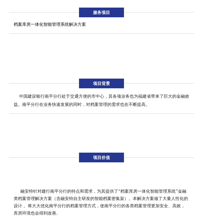 中國建設銀行南平分行處于交通方便的市中心,其各項業(yè)務也為福建省帶來了巨大的金融效益。南平分行在業(yè)務快速發(fā)展的同時,對檔案管理的需求也在不斷提高。及尚針對建行南平分行的特點和需求,為其提供了“檔案庫房一體化智能管理系統”。